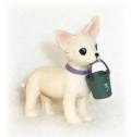 <ミニチュア動物シリーズ>のチワワchanです クリーム色のチワワちゃんが緑のバケツを咥えています ※バケツ部分はブリキ製です サイズ:胴の長さ約4cm 頭までの高さ約5cmくらい 彩色などハンドペイントのためお顔の表情が若干個体差がありますので ご了承ください